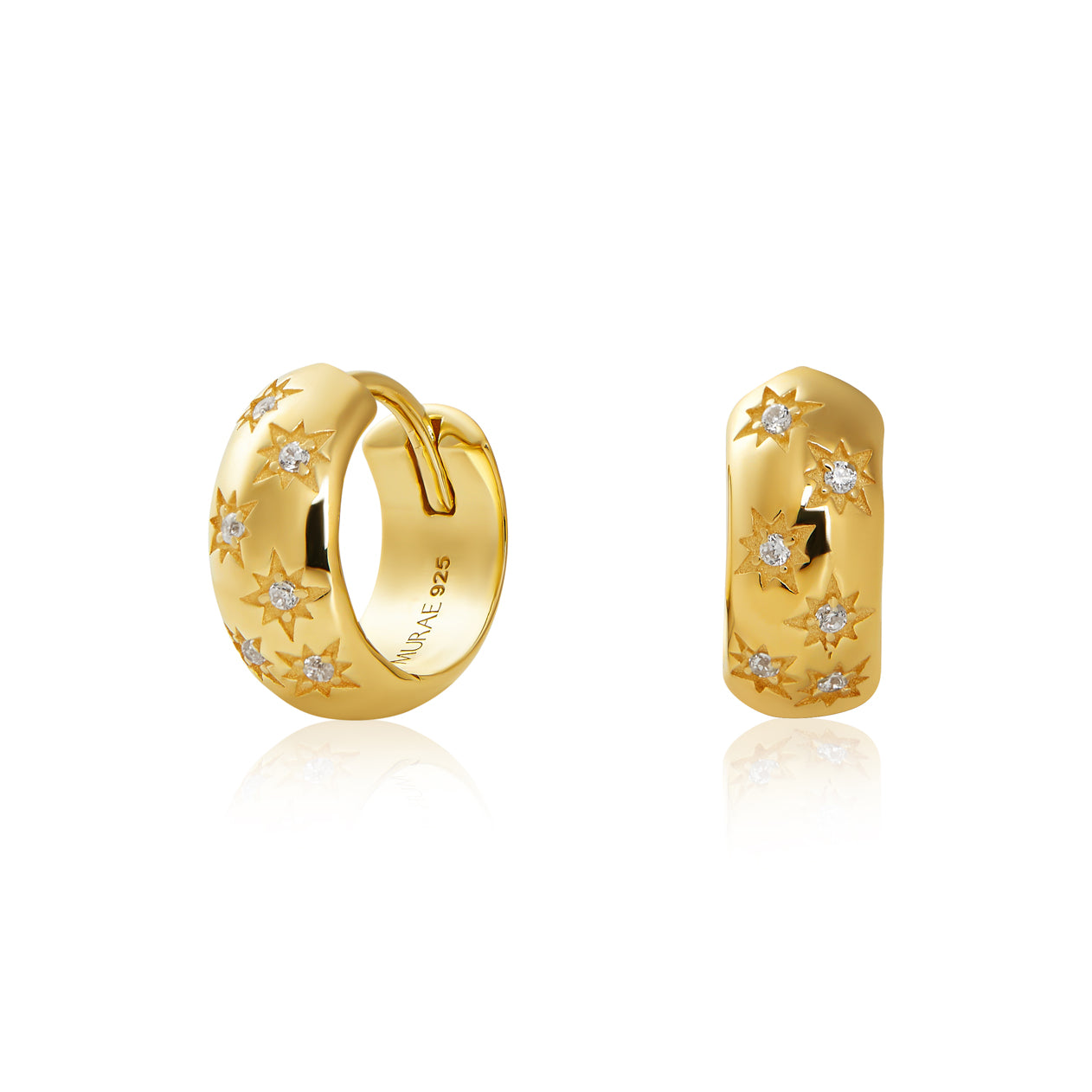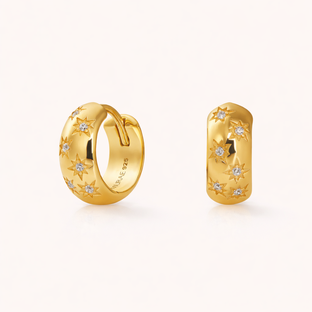 Selena Means 'Star in the Sky' These stunning 14k gold vermeil huggies are set with a scattering of white topaz stars. Easy to wear, perfect on their own or as part of a curated ear.